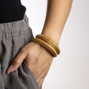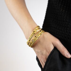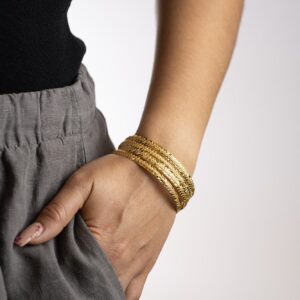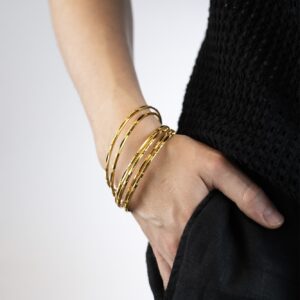Aloysius célèbre les bangles indiens, des bracelets porteurs d’une tradition profondément ancrée dans la spiritualité et les croyances hindoues. Née de mes origines paternelles, la marque tisse un pont naturel entre mes deux cultures.