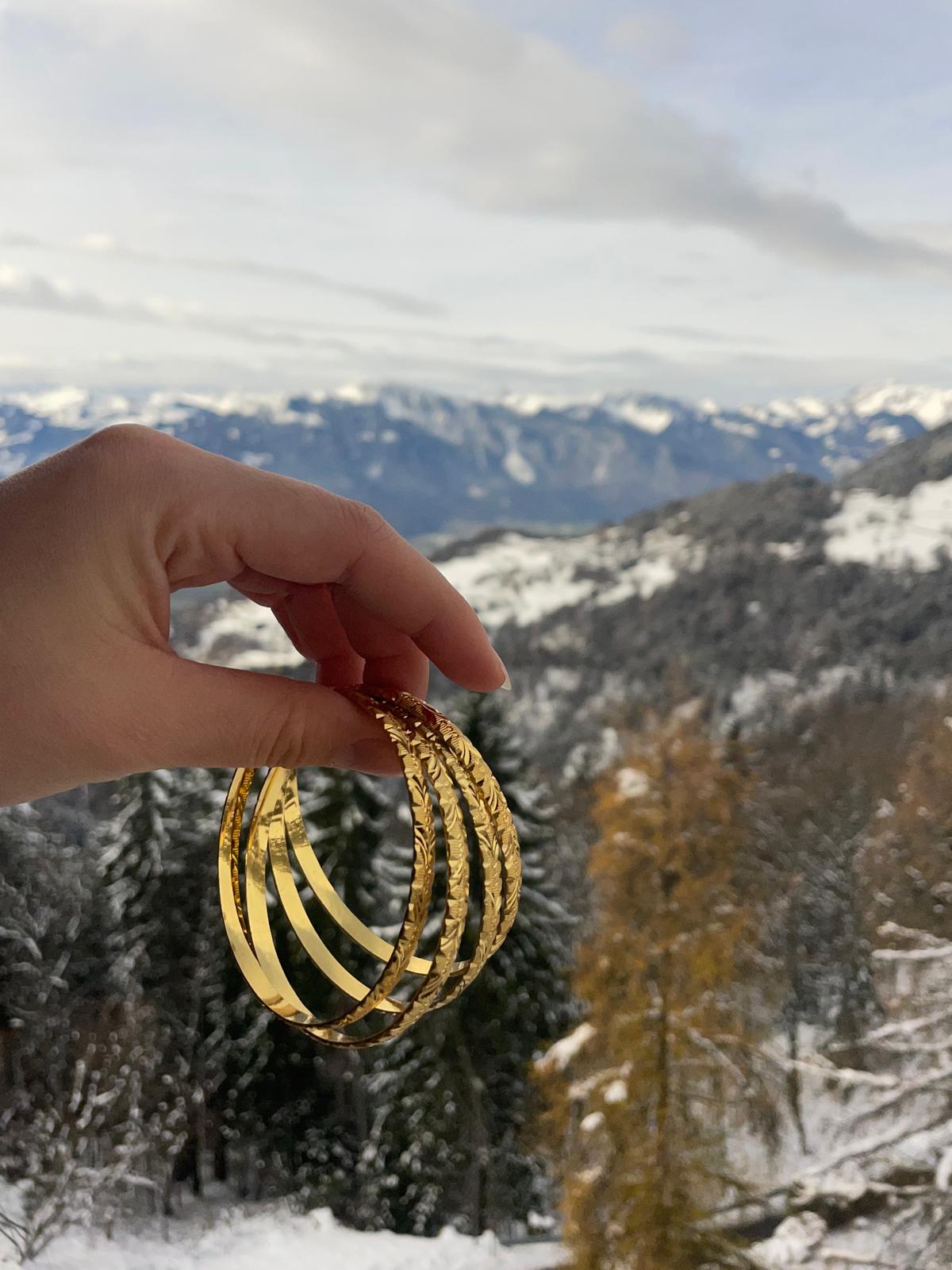 Le tintement si singulier de ces bracelets, qui résonne et attire les énergies positives, accompagne mes souvenirs les plus intimes. Aloysius s’est dessinée au fil des échanges avec ma famille en Inde, guidée par le désir de bâtir un projet authentique. C’est aussi pour moi une manière de rendre hommage à mon papa et de préserver le lien précieux qui m’unit à lui. La collection réunit des bracelets lumineux, simples à porter, pensés pour accompagner les gestes du quotidien : des pièces qui se portent avec facilité et apportent cette touche délicate qui fait toute la différence.